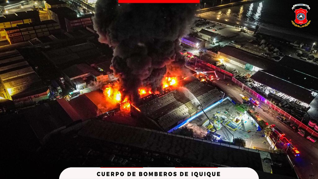 El Comandante del Cuerpo de Bomberos de Iquique, Jorge Medina, señaló que la primera alarma de incendió se dio a las 3.43 horas de la madrugada y comprometió todas las fuerzas disponibles. Al llegar al lugar los coluntarios se encontraron con tres galpones en fase de libre combustión y finalmente el área afectada bordeó los 6 mil metros cuadrados.