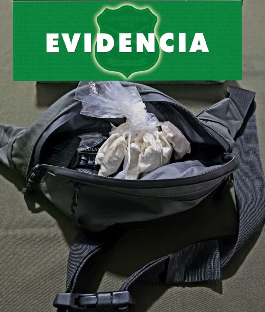 Debido a ello, los uniformados se acercaron para efectuarle una fiscalización, observando que portaba un bolso en cuyo interior mantenía 12 bolsas con una sustancia de aspecto similar a la pasta base.